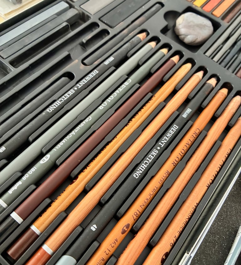 Kunsttherapie ist eine Therapieform, in der man durch die künstlerische Gestaltung Ausdruck finden kann für innere Befindlichkeiten, die oft nur schwer oder manchmal gar nicht in Worte zu fassen sind. Man kann Gefühle durch das Gestalten reflektieren und verstehen lernen. Gestalten nennen wir übrigens das, was wir tun - also zeichnen, malen, Skulpturen machen, collagieren usw. Es geht nicht darum, “perfekte Kunstwerke” zu schaffen und es sind auch keine künstlerischen Vorkenntnisse nötig, weil es geht darum, den kreativen Prozess, also das, was WÄHREND des Gestaltens passiert, zu reflektieren und sich dabei selbst zu entdecken. GEFÜHLE, GEDANKEN und INNERE BILDER können so erkannt und erforscht werden. Wir verwenden Materialien wie Aquarell-, Acryl-, Guache-Farben, Ölkreiden, Pastellkreiden, Kohle, Bleistifte, Buntstifte, Filzstifte, Grafit, Tusche, Collage-Material, Ton, Stein und Naturmaterialien. Jedes Material hat eine spezifische Eigenschaft und Qualität und kann dadurch sowohl bewusste als auch unbewusste Gedanken und Emotionen zum Ausdruck bringen, die wiederum dazu beitragen, tief verwurzelte Probleme zu identifizieren und zu behandeln. Wir verwenden die Materialien also, um uns selbst zu spüren.