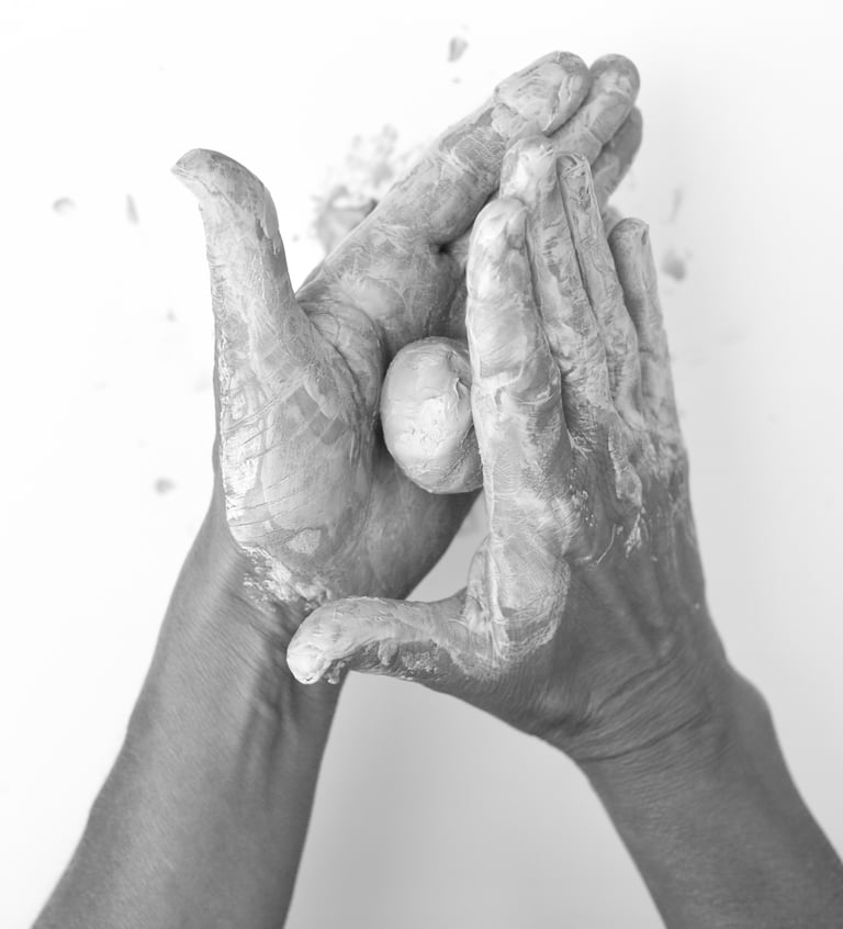 Außerdem liebe ich das Material Tonerde. Ich erlebe oft, wie Menschen sich wie abgeschnitten von ihrem Körper fühlen, viel zu sehr im Kopf sind und dann aber durch das Gestalten mit Ton wieder ins Spüren kommen. Es ist ein sehr kraftvolles tool, dessen therapeutische Wirksamkeit ich auch bei mir selbst immer wieder als sehr heilsam empfinde.